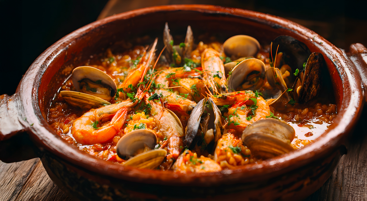 L'Arroz de Marisco est le joyau des tables portugaises, un festival de fruits de mer dans un riz crémeux parfumé au safran et à la coriandre. Crabes, langoustines, palourdes et crevettes partagent la vedette dans ce plat généreux et coloré, où chaque grain de riz absorbe les saveurs de l'océan. Un plat de fête qui réunit familles et amis.
